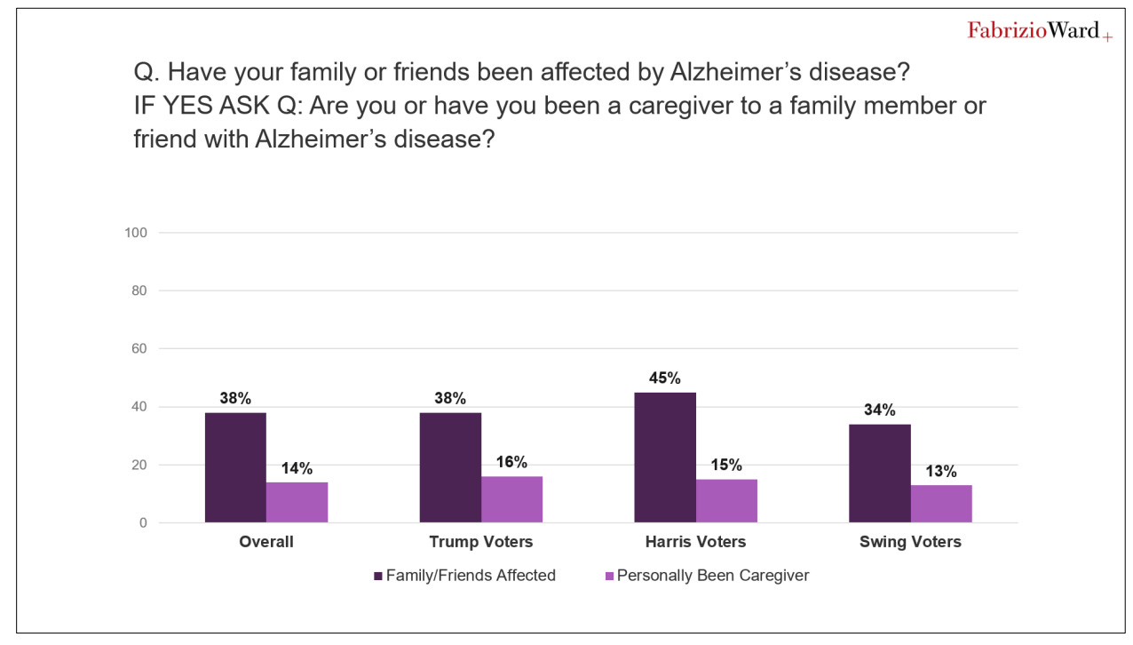 This issue also hits home for a near-majority of Americans. 38 percent of voters in the surveyed battleground House districts said they have family or friends who have been affected by Alzheimer’s.